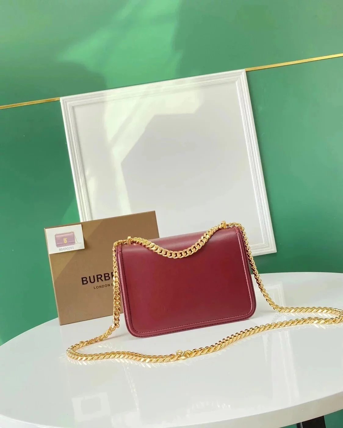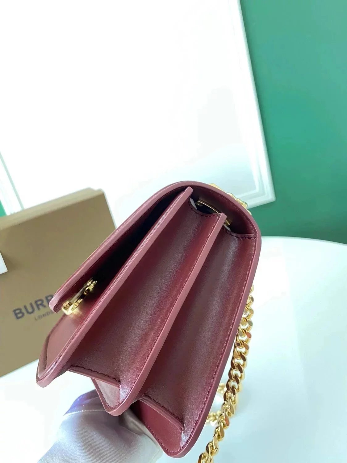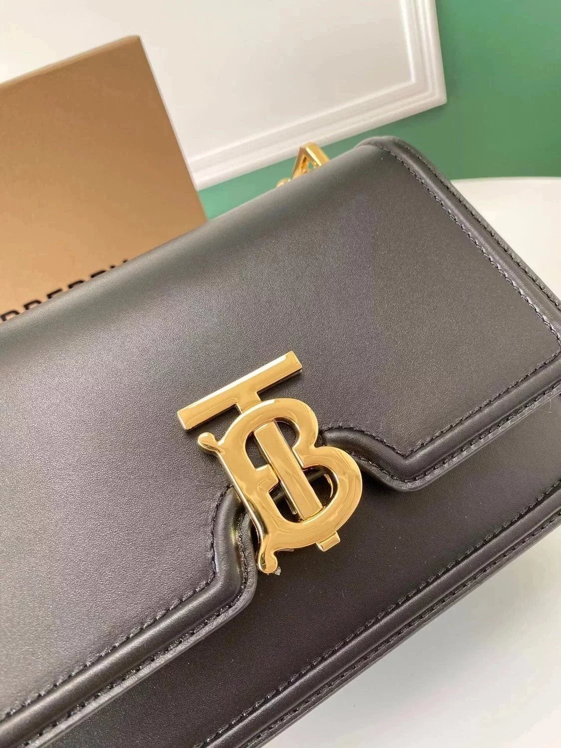 Burberry Women's Bag Top version 【Genuine Goods Original Leather】2022New TB Exclusive Logo Twist Lock Bag Chain Bag box Square Bag Women's Cow Leather Bag Crossbody Bag