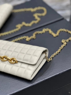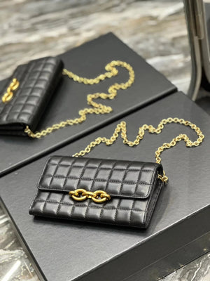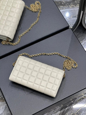 YSL Women's Bag Top version 【Genuine Goods Original Leather】2023New SLPLEMAILLON_Chain Bag Yang Shulin New Product woc Chain Envelope Bag Clutch Messenger Bag Lambskin Genuine Leather Bag Women's Bag738109