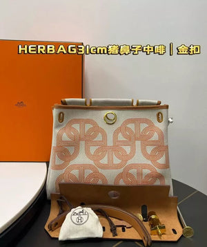 [Compare with the Latest and Highest Version of Herbag 31cm in the Whole Network, the Upgraded Version of Herbag in the Whole Network] Genuine Goods Medium Brown | Pig Nose "She Can Only Meet and Cannot Ask for" This Is the Real Imported Leather of Herbag's It Bag Interpretation International First Brand compared with Any Version, There Are More than Genuine Goods Details. Original Original Steel Is Equipped with Original Double High Three-Dimensional Water-Repellent Cloth, but It Is Lighter than Full Leather. the Whole Bag Can Be Completely Disassembled, Dispersed, Convenient and Clean. Very Suitable (Male and Female Gods) daily Practical, Not Very Exaggerated, Very Low-Key, All-Matching, Not Dull, It Belongs to Hermes Entry Style. In Addition, a Small Bag Is Attached to the Bag to Hold Lipstick Keys, Cosmetics Cash Is Easily Included. In Addition, There Are Different Annual Production of Old Craftsman the Only Identification of Marked Art Limited Edition! Hermes Herbag PM SIZE: Height 25 * Width 31 * Depth 10 Still Belongs to Herbag Series Small Bag, Mature and Comfortable Design, Very Suitable for Dating! Pre-Purchase Instructions