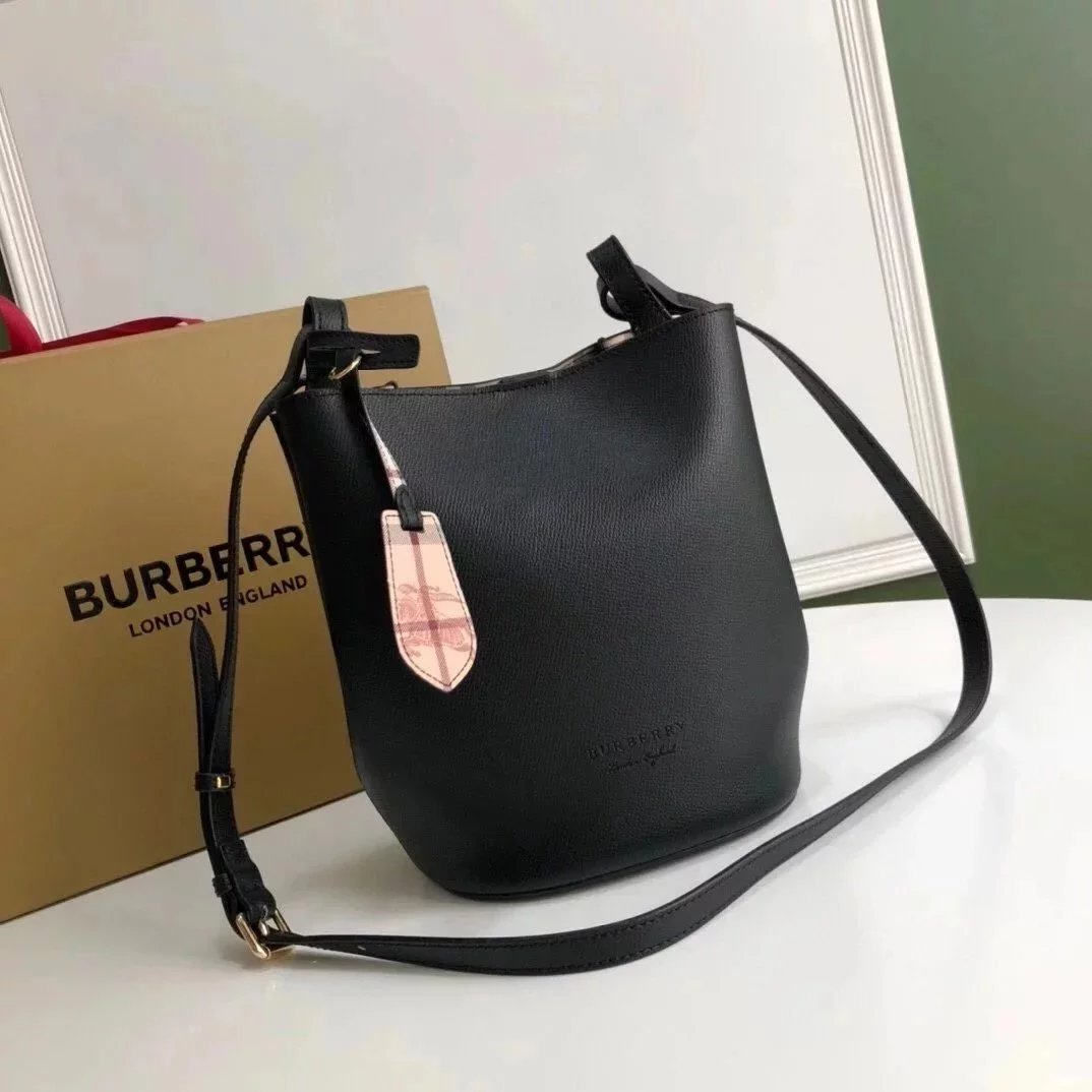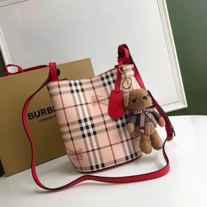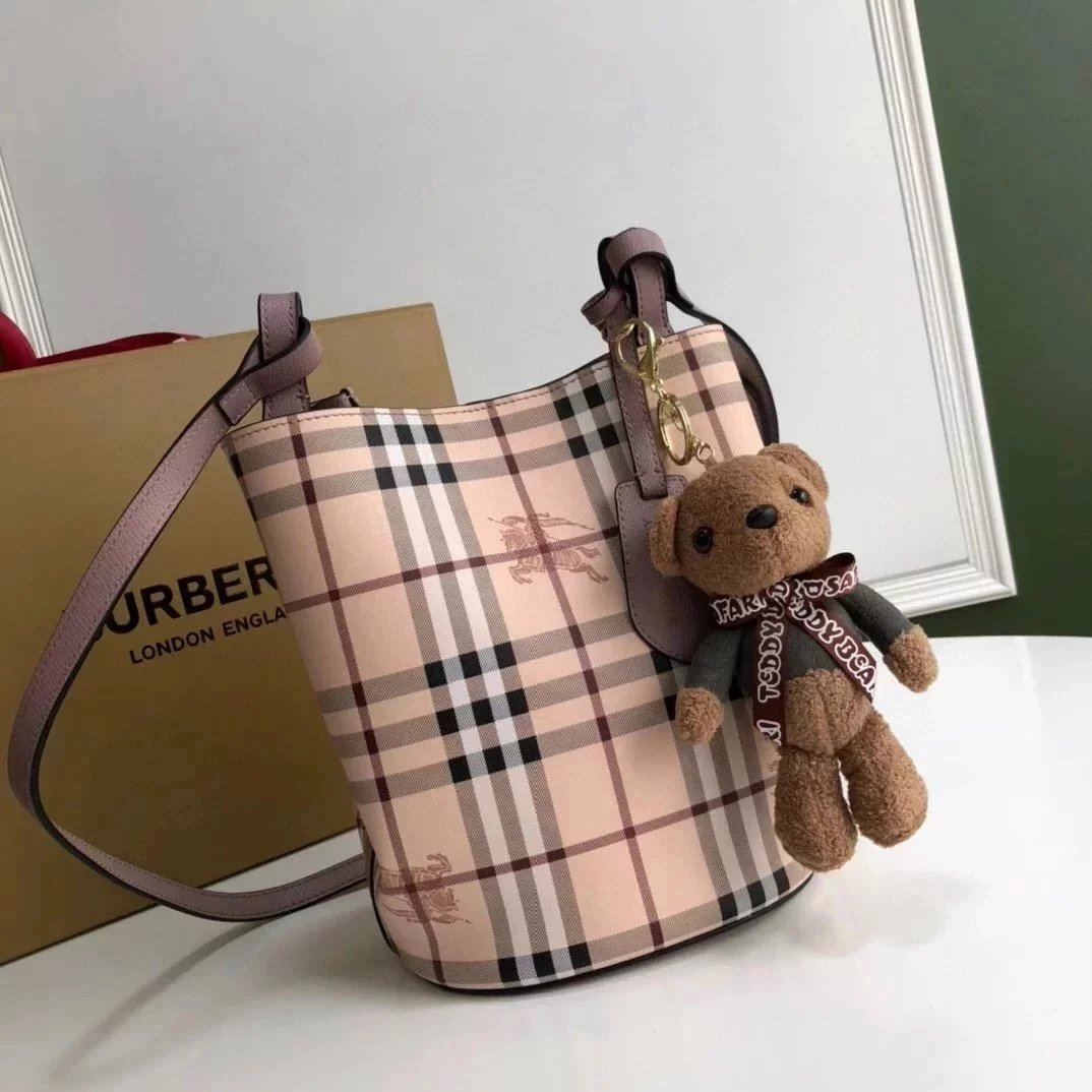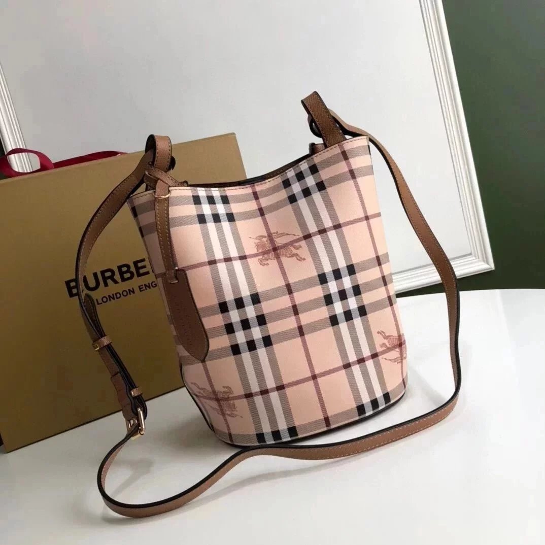Burberry Women's Bag Top version 【High-End Customization】Plaid Bucket Bag Crossbody Bag Shoulder Bag Original War Horse Plaid Inner Italian Palm Pattern Cowhide Three Colors