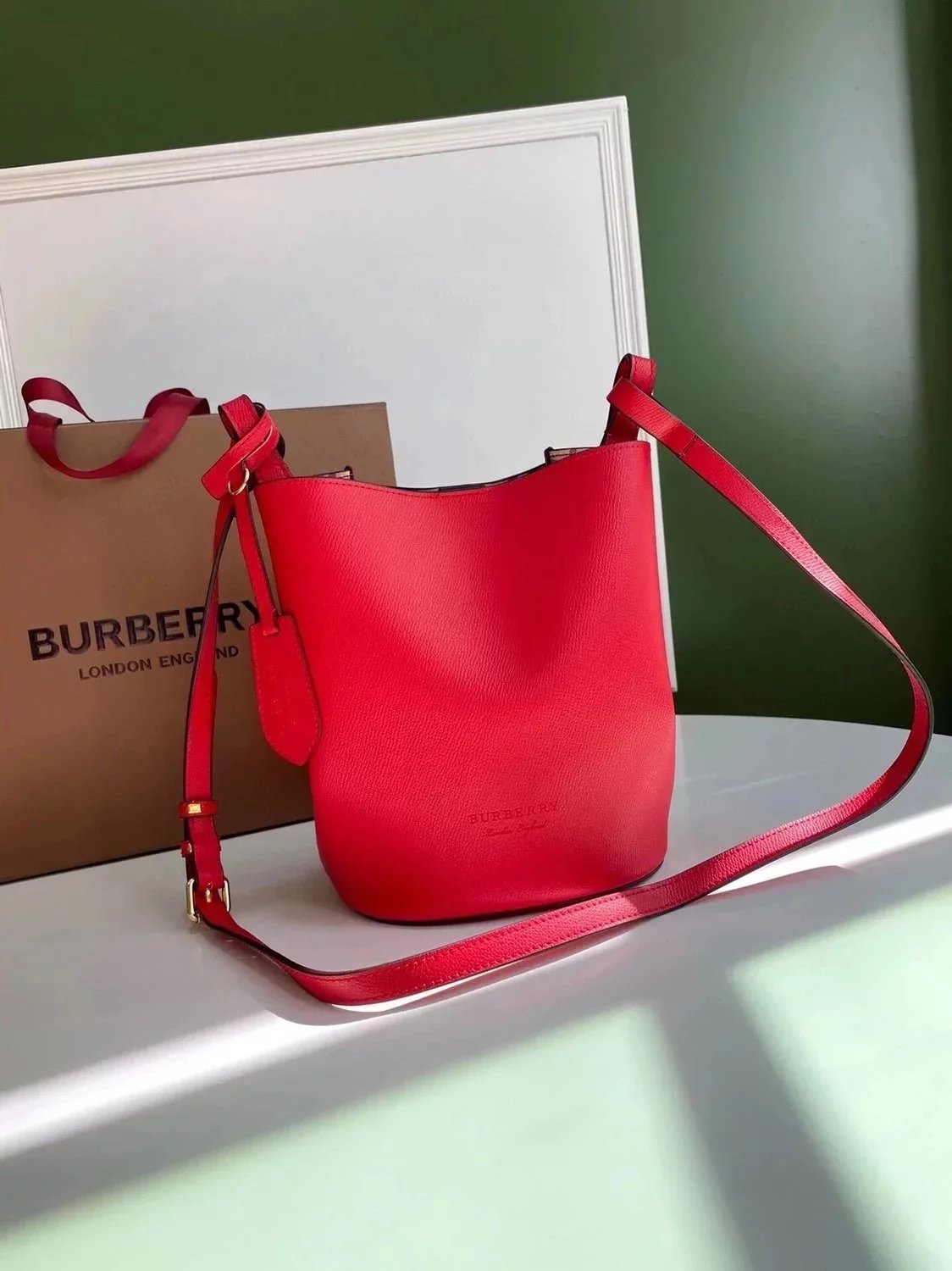 B's Simple Style Crossbody Bucket Bag, Made of Lightweight Palmprint Leather by Italian Advanced Craftsmen and Equipped with Classic Haymarket Plaid. Exquisite Body Design, Suitable for Placing Personal Belongings, Easy to Cross Body Or Shoulder Back. Fashionable and Practical Style, It Is an Ideal Choice for Both Day and Night Modeling Size 18.5X15 X 23.5cm Instructions before Purchase