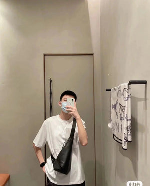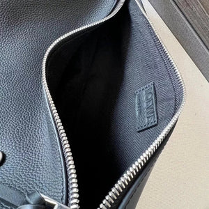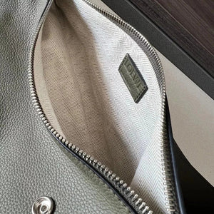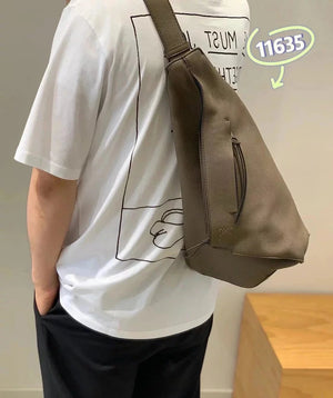 This Is a Functional Streamlined Hanging Pocket Made of Soft Grain Calfskin, with an Adjustable Leather Belt and Zipper Top Design, Which Can Be Folded When in Use and Can Be Fixed by Snaps. * Shoulder Or Crossbody * Single Back Chest Bag Multiple Back Methods * Adjustable Left and Right Sides below Shoulder Strap * Cow Leather Zipper Head * Herringbone Cotton Canvas Lining * Anagram Embossed * Same Style for Men and Women * Couple