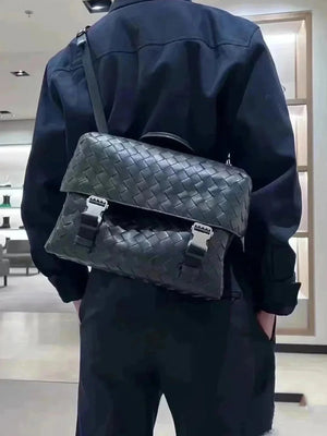 New Postino Men's Messenger Bag 776524? Large Capacity, Full of Details, Charm, Men's Essential Items? Soft Cowhide Woven and Silver Metal Double Buckle Design, Full Score for Texture? The Lining Is Made of Paper Nylon with Zipper Lining, Which Is Light and Easy to Use? Adjustable Strap and Top Handle, Back Buckle Can Fix the Bag on a Bicycle Stand to Easily Switch between Casual and Frank Style? Advanced Classic Color Matching Exudes Elegant Atmosphere Simple and Elegant Design Makes You Shine in Any Occasion✨✨