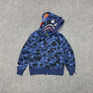 Bape Hoodie Top Version Japanese Style Fashion Brand430G Double Hood Heavy Shark Coat Couple's Loose Cotton Camouflage Hooded Sweater