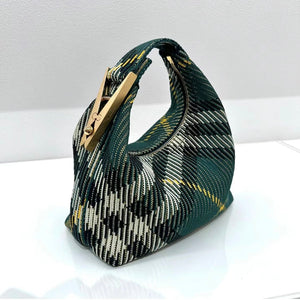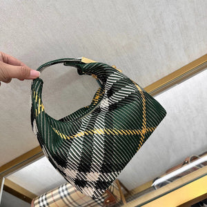 Burberry Women's Bag Top version Level Surrogate Shopping2024Summer New Clip Bag Italian Knitted Classic Plaid Self-Weight Light Imported Clothespin Style Hardware Hanging Buckle Engraved logo Women's Fashion Trendy Bags Lunch Box Bag Underarm Bag
