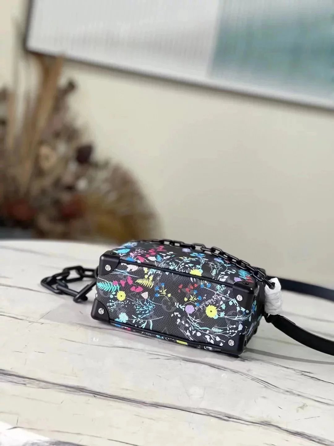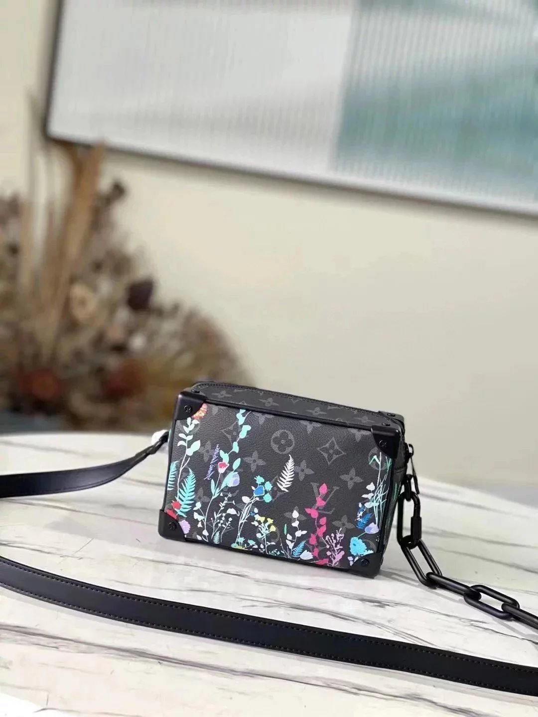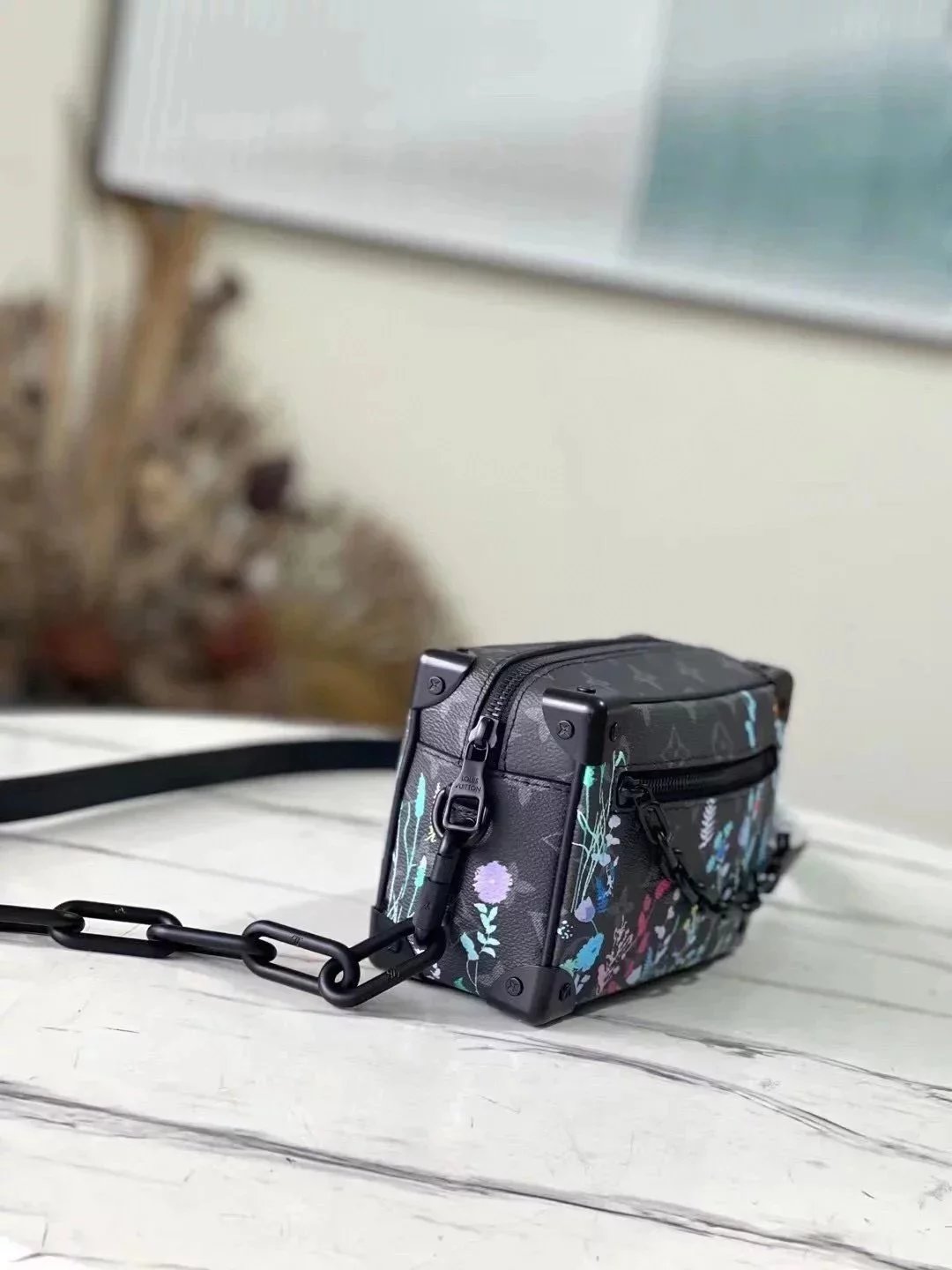 Louis Vuitton LV Men's Bag Top version 【New Arrivals】2022New Men's minisofttrunk Chain Box Black Flower Silk Screen Printing One Shoulder Crossbody Men's and Women's Bags N45278