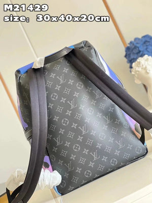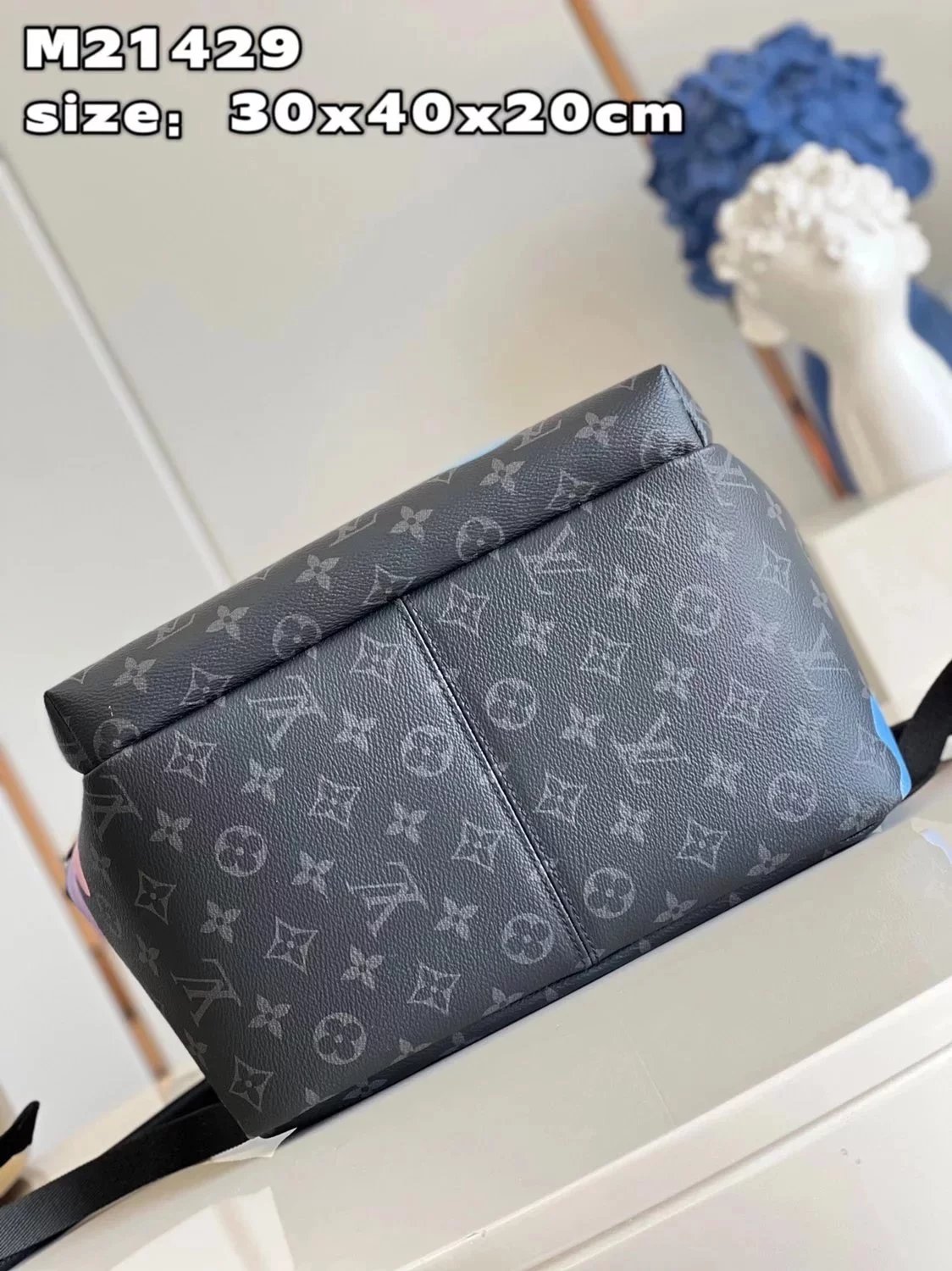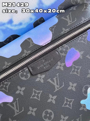 [Exclusive Real Shot M21429] This Discovery Backpack Comes from Room with a View Capsule Series, Recalling Designer Virgil Abloh's Vision of Floating Clouds. Monogram Eclipse Canvas Depicts the Quiet Sunrise with Dreamy Colors, and the Cloud Patterns Spell out the Freehand LV Logo. Size: 30x40x20cm Note before Purchase