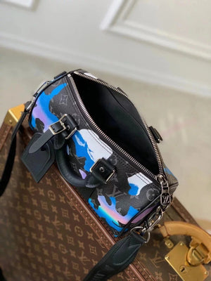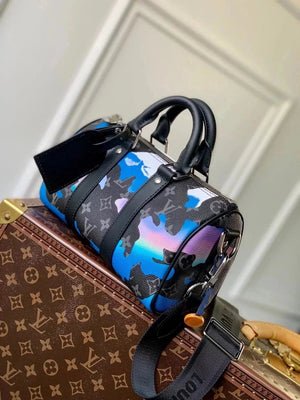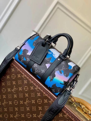 Louis Vuitton LV Men's Bag Top version 【New Arrivals】M21430Printed Men's Pillow Bag Series Keepall25Handbag Material MonogramEclipseReverse Canvas,Unisex Shoulder Messenger Bag Handbag