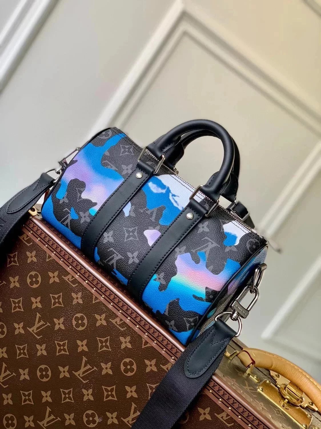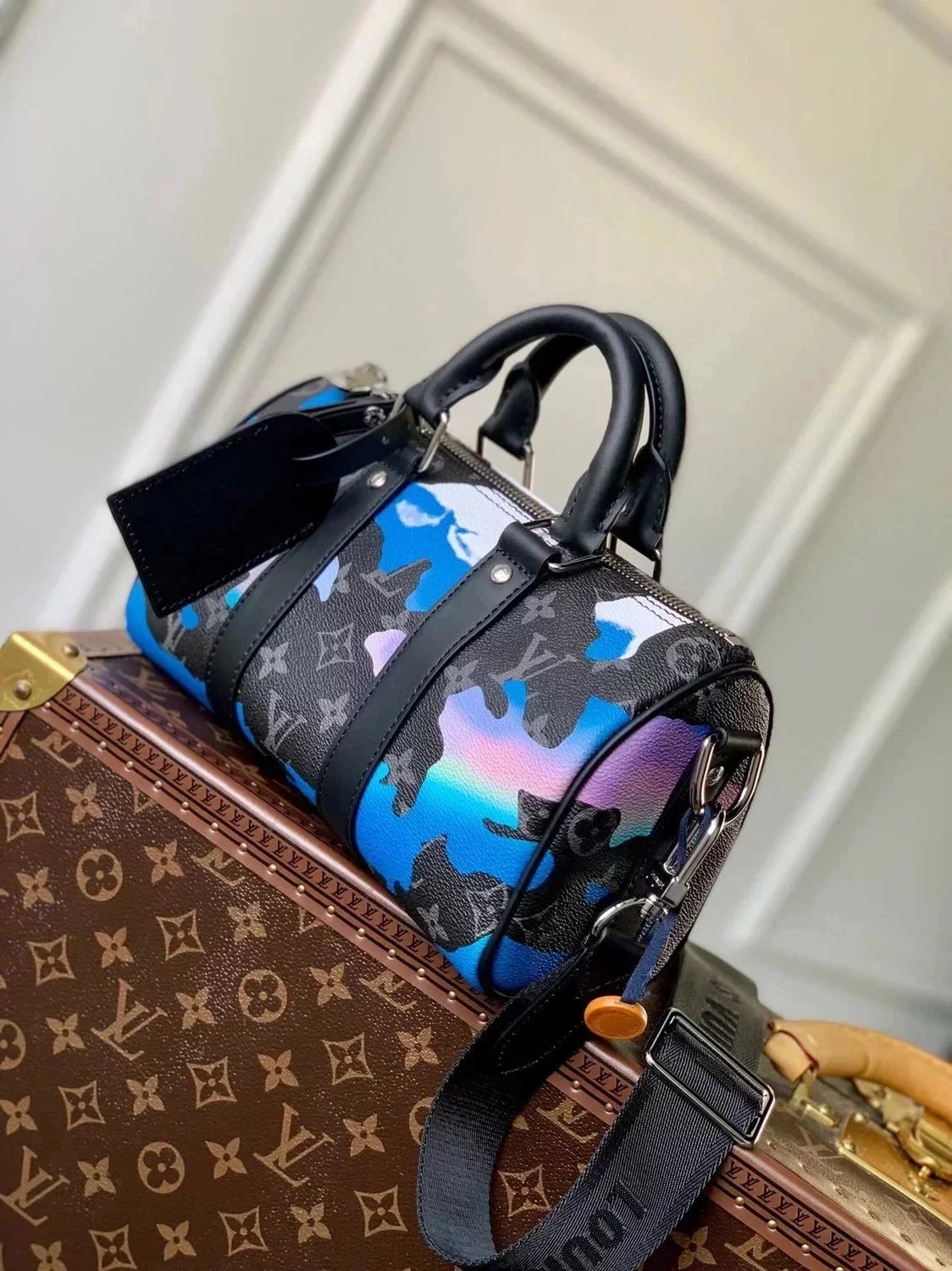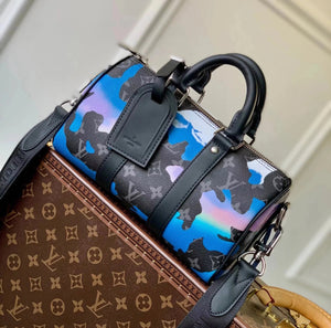 M21430 Inkjet Painting the Classic Outline of This Handbag Concentrated Keepall Travel Bag, Made of Monogram Embossed Taurillon Leather, Compact Configuration Is Suitable for Storing Mobile Phones, Wallet and Other Accompanying Gadget. Use Leather Handles and Removable Shoulder Straps to Easily Travel with Trendy Style. Size: 25*15*11 Instructions before Purchase