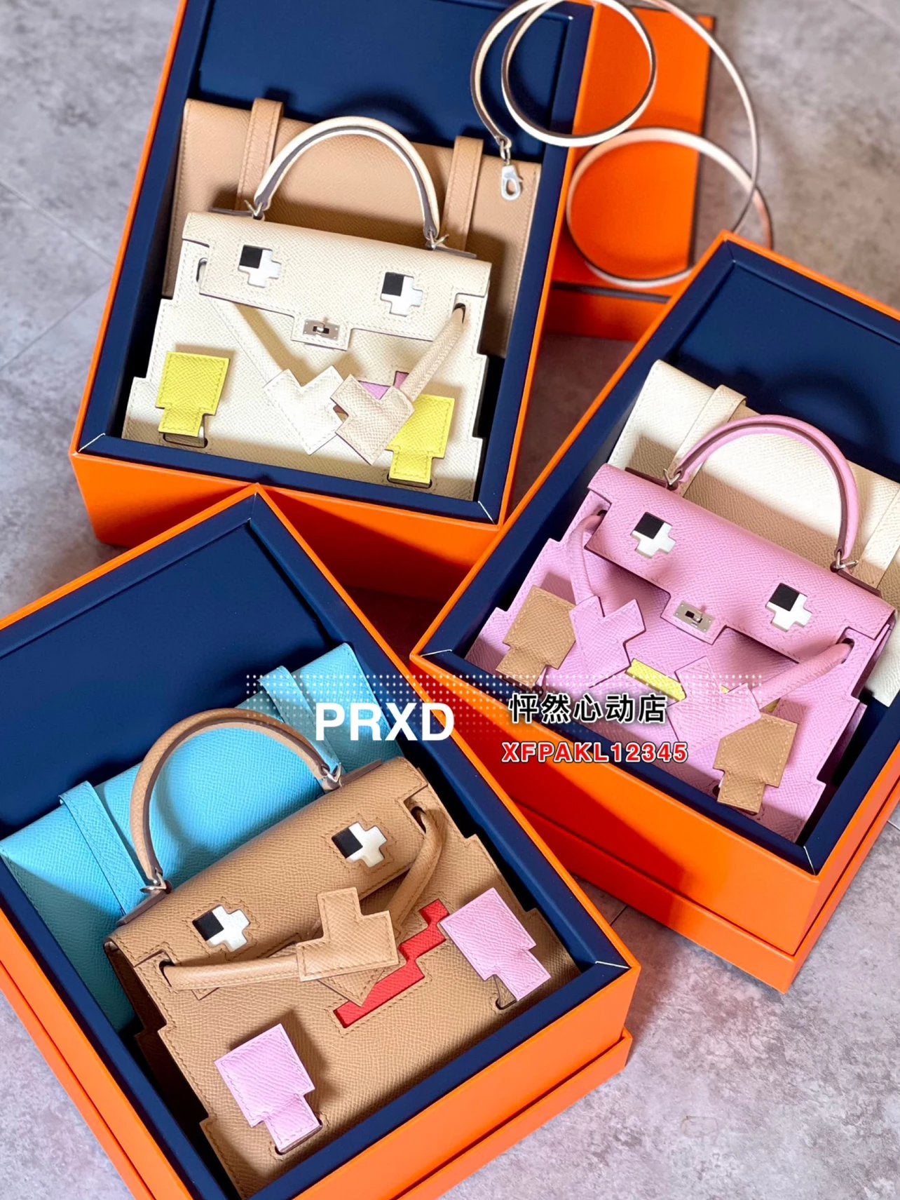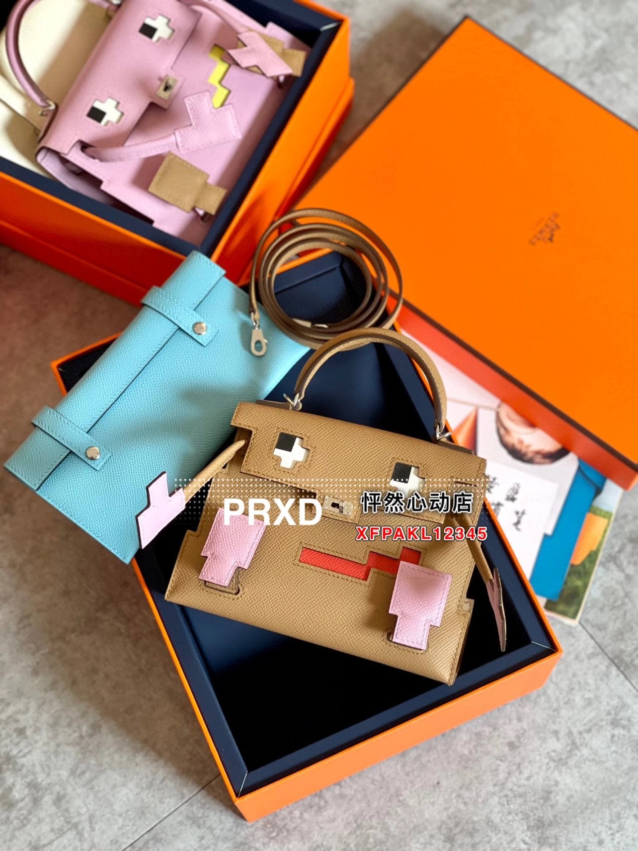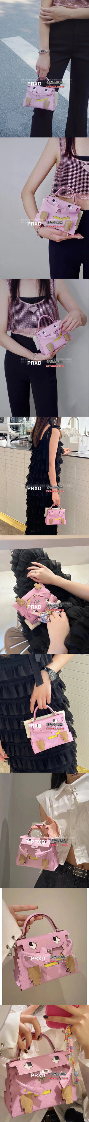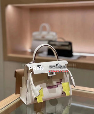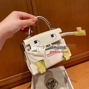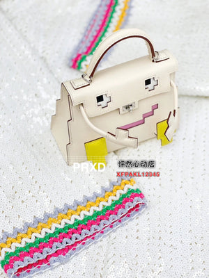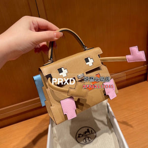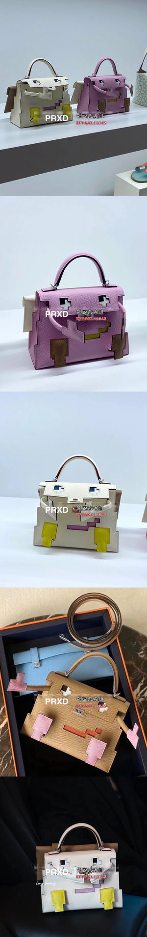 Hermes women's bag Top version New Kellydolepicto Mosaic Doll Bag,Cute to New Style Doll Bag~Mosaic Doll Bag Women's Bag Shoulder Handbag Crossbody
