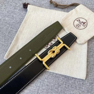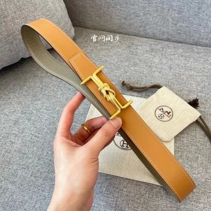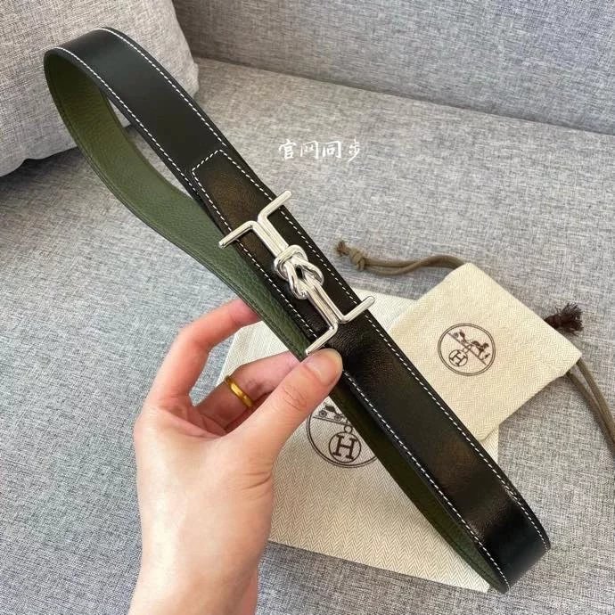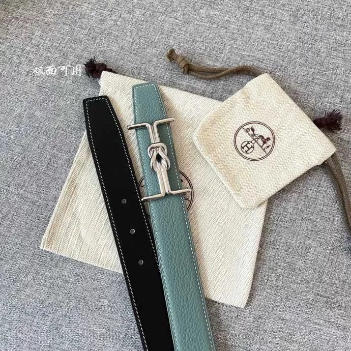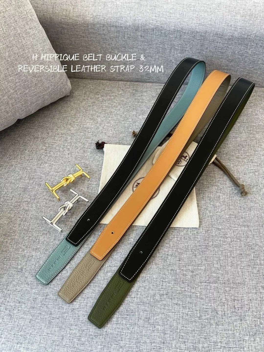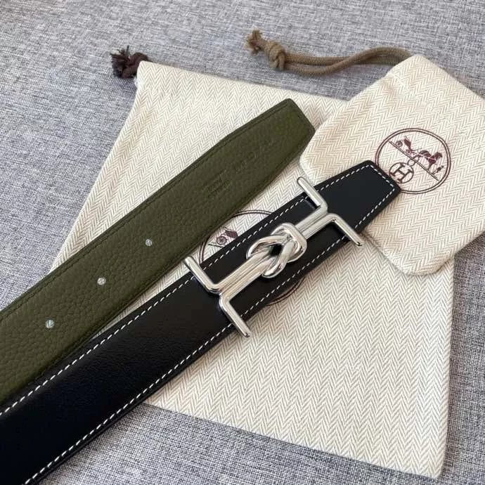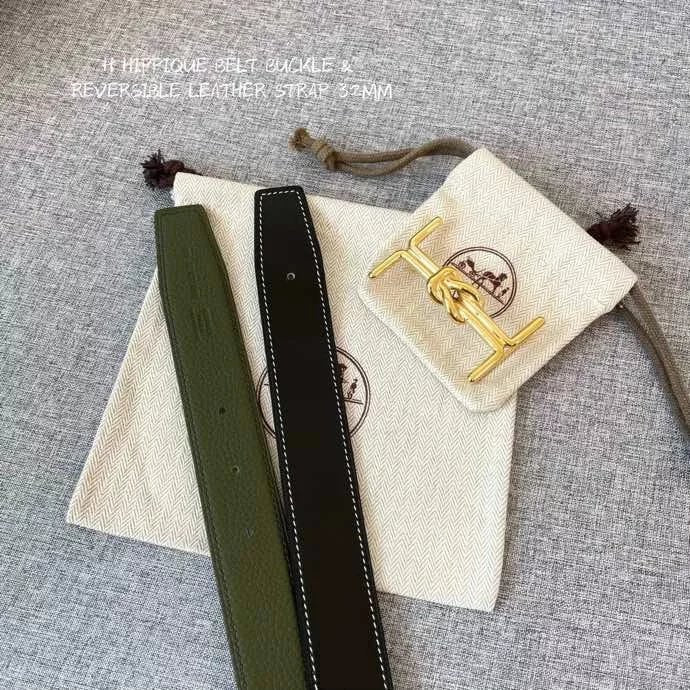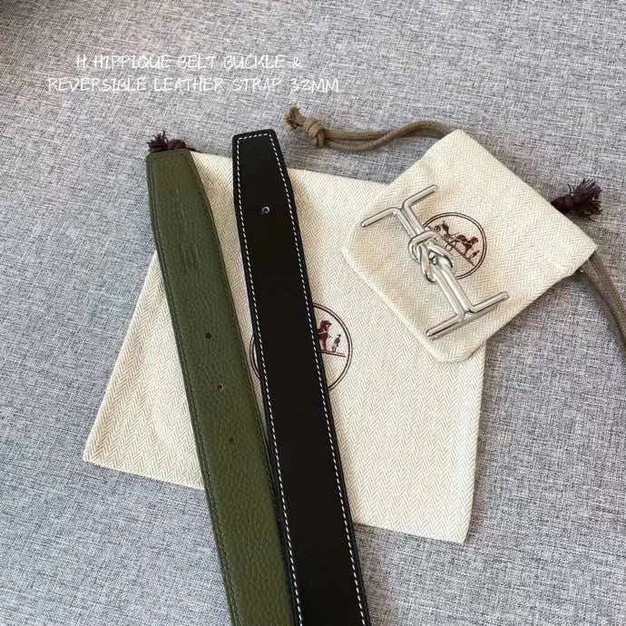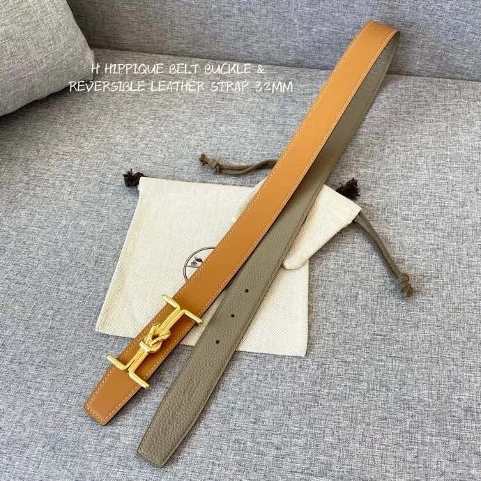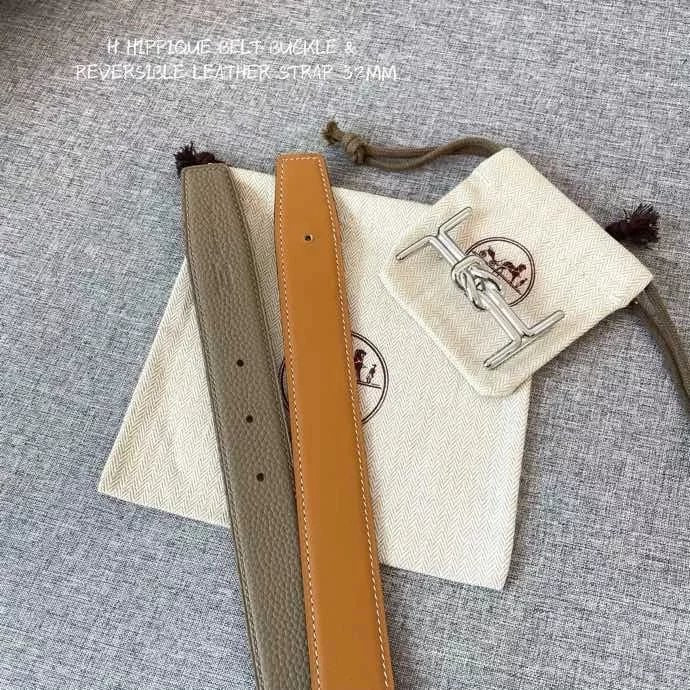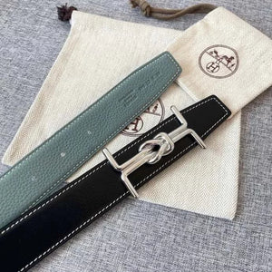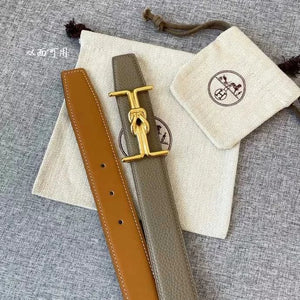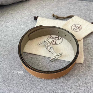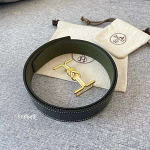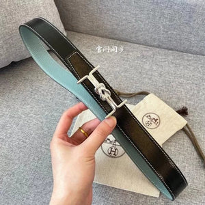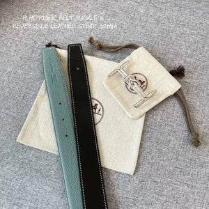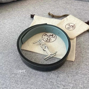 Hermes Belt Top version 【New products in stock】Leather Belt Men's Leather3.2mm Fashion H Buckle Double-Sided Casual Belt Men's and Women's Belt