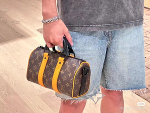 This Handbag Concentrates the Classic Outline of Keepall Travel Bag and Is Made of Monogram Embossed Taurillon Leather. the Compact Configuration Is Suitable for Storing Accompanying Gadget Such as Mobile Phones and Wallet. Use Leather Handles and Removable Shoulder Straps to Easily Travel with Trendy Style.