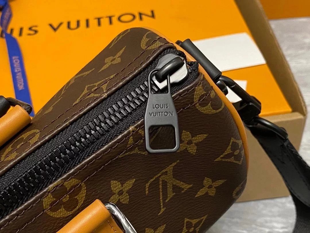 Louis Vuitton LV Men's Bag Top version New Sunset Orange Yellow Leather Men's Pillow Bag Shoulder Messenger Handbag Male Postman Pillow Bag round Bag Boston Bag