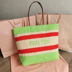 Miu Miu Bag Top version 【Original Custom】New Product Import Lafite Straw Woven Cotton Woven Tote Bag Beach Bag Shopping Bag Mother Bag Woven Bag5BG228The Only Pair of Quality Front Iconic Embroidery in the Market,Extra Light Capacity Super Large Mummy Bag