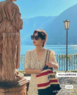 [Miao Jia] New Product Import Lafite Straw Woven Cotton Woven Tote Bag 5bg228, the Only Pair of Quality in the Market, the Iconic MiuMiu Embroidery on the Front, the Cotton inside, Super Light, Large Capacity, Necessary for Travel, Suitable All Year round, the Actual Product Is Super Invincible,