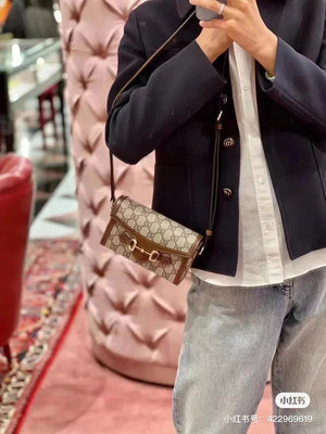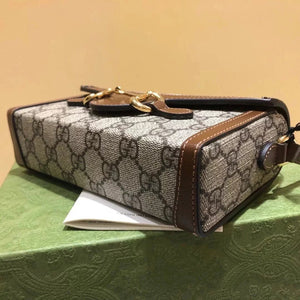 Gucci Women's Bag Top version 【Original Leather】2022New Product Horsebit1955Horsebit Buckle Mini Handbag Mobile Phone Bag Box Bag Small Bag minibag Crossbody Small Bag Shoulder Bag699296