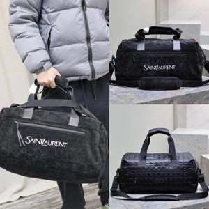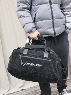 YSL Backpack Top version 【Original Leather】2024Early Spring New Black Jacquard Large50cm Travel Bag Suede Travel Handbag Travel Bag Plaid Nylon Cloth Luggage Bag Large Men's Bag Crossbody Bag Women's Bag Shoulder Handbag Large Capacity Bag for Business Tr