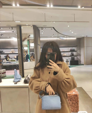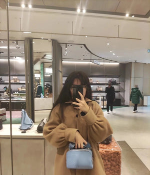 New Small Box Camera Bag Men's and Women's Same Horizontal Camera Bag a Functional Handbag, Double Zipper Closure, Two Zipper Compartment Pocket Classic Cow Leather
