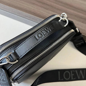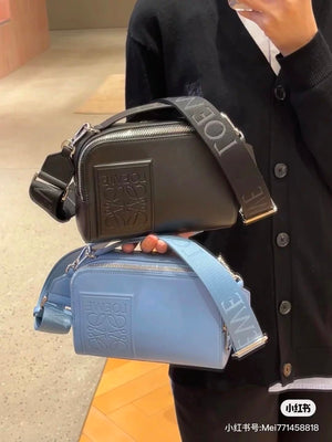 LOEWE Women's Bag Top version 【Original Leather Hardware】2023New Small Box Camera Bag Men's and Women's Same Horizontal Camera Bag Messenger Bag Shoulder Bag Double Zipper Open and Close Two Zipper Compartment Pocket Classic Cowhide