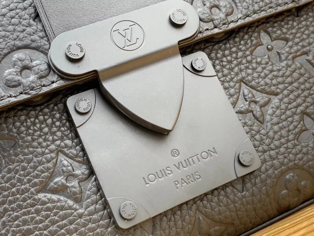 This S Lock Messenger Bag Is Made of Soft Taurillon Leather, with Elegant Black Tones and Embellished with the Brand's Traditional Monogram Embossed Pattern. The Magnetic Lock Is Inspired by the Hard Box Lock Designed by Georges Vuitton 1886. It Has a Modern Temperament and Can Ensure the Safety of Goods. Equipped with Hard-Side Suitcase-Style Handle and LV Logo Shoulder Strap for Easy Carrying