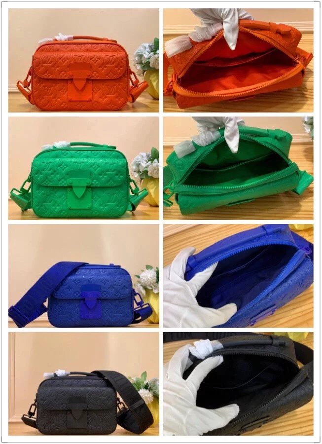 Louis Vuitton LV Men's Bag Top version 【Original Leather Heavy Recommend】M584892021New men's bag SLOC Black Lychee Pattern Cowhide Embossed Men's Bag Men's Shoulder Messenger Bag Portable Camera Bag Men's Backpack Casual Bag
