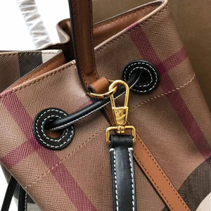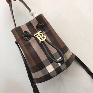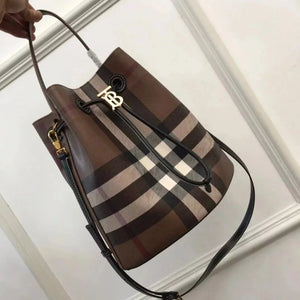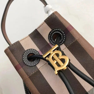 [B Home **Original Order] Drawstring Bucket Bag, Decorated with Burberry Plaid, with Italian Tanned Leather Trim and TB EXCLUSIVE Logo.