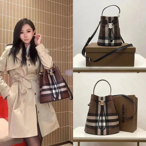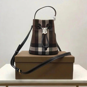 Burberry Women's Bag Top version 【Original Leather】New Babaojia Drawstring Bucket Bag Decorative Plaid with Italian Tanned Leather Trim and TB Exclusive Logo New Bucket Bag Handbag Crossbody Bag