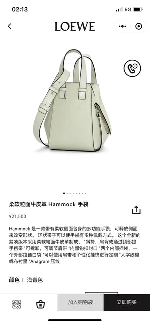LOEWE Women's Bag Top version 【Original Leather Premium Version】2023New Hammock Bag Satin Cowhide Hammock Handbag New Size20cm New Hammock Bag Handbag Vegetable Basket Bag Women's Bag Silk Surface Cow Leather Wide Shoulder Strap Litchi Pattern Cowhide Lea