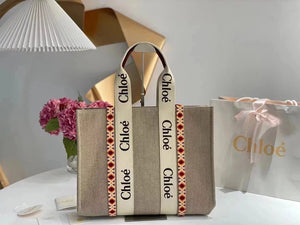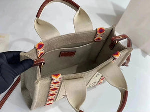 Chloe Bag Top version 【Original Leather】Spring and Summer New Woody Bohemian Style Diamond Plaid Hand-Embroidered Tote Bag Tote Bag Shopping Bag Vegetable Basket Bag Small Size Crossbody Bag Mummy Bag Beach Bag woody Tote Bag