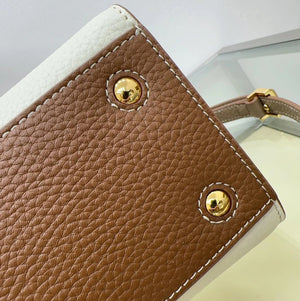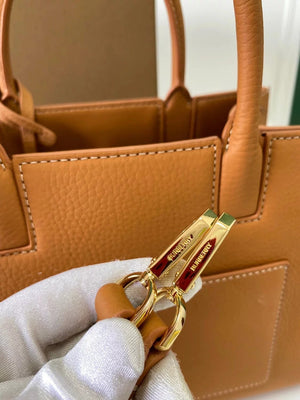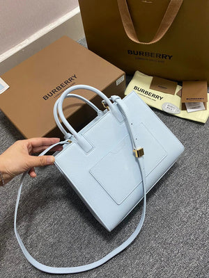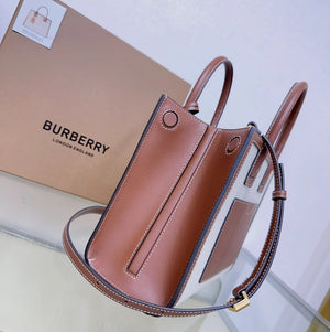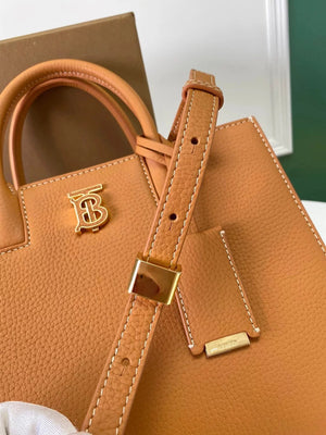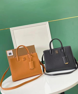 The Latest Version of B's Upright Tote Bag Is Made of Italian Tanned Grain Leather with Eye-Catching and Glossy Thomas Burberry Logo. Deft Design, with More than One Pockets, Accompanied by Leather-Covered Mirror Pendant. Portable Or Removable Shoulder Strap.