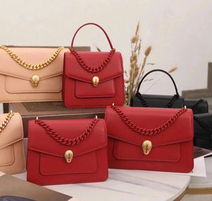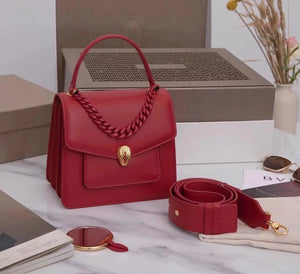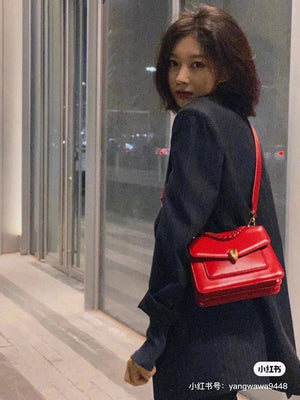 BVLGARI Bag Top version 【Original Quality】2021New Women's Bag Limited Edition Snake Head Buckle Red Enamel Snake Eye Women's Shoulder Bag/Crossbody Handbag Bag Decorated with a Snake's Head Naza Same Product Detachable Shoulder Strap