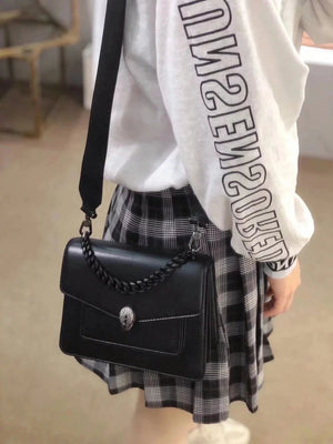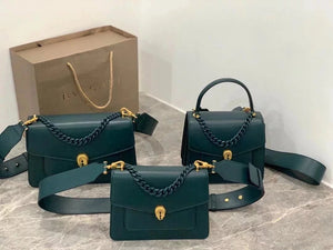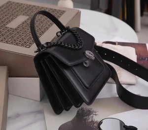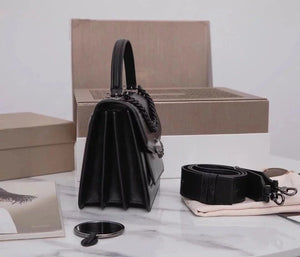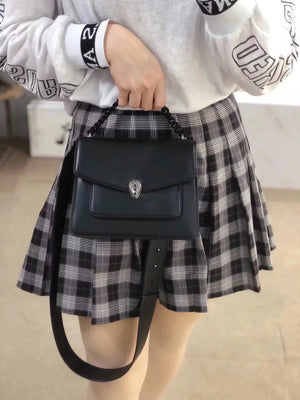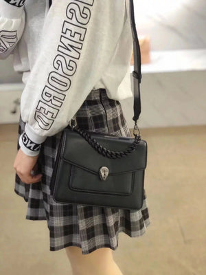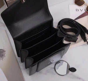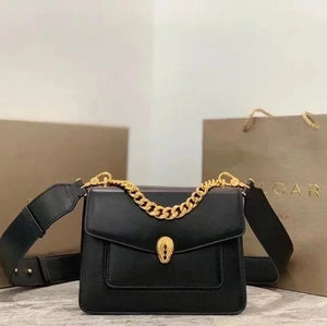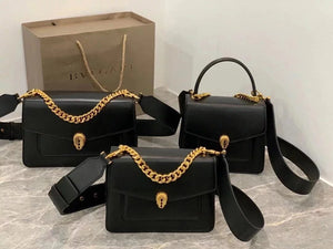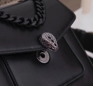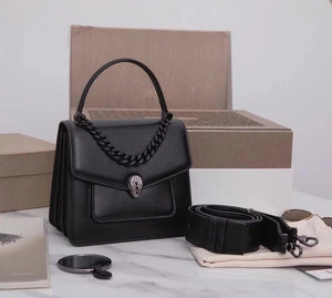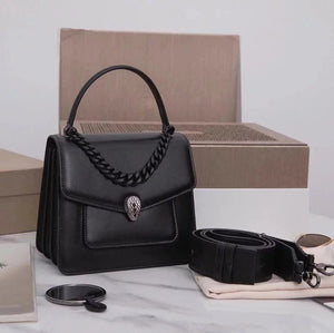 With a More Modern Look and Everyday Style, the New Handbag Adds Icing on the World of Serpenti Forever. This Maxi Chain Bag Is Made of Soft Black Lambskin and Matched with Ru-Plated Brass Accessories. The Serpenti Snake Head Buckle with Ru-Plated Brass Draws Inspiration from the Bvlgari Antique Watch of 1960 S. The Middle Part Is Decorated with Small Black Onyx Snake Scales, Dotted with Red Enamel Eyes, Showing New Ideas. The Classic Bvlgari Bulgari Chain in the Same Color, Decorated with a Flap like a Necklace, Shows the Design Essence of the Jewelry Brand Bvlgari Bulgari. Small Size, with Three One Storage Layers, a Handle and an Adjustable, Removable Leather Shoulder Strap, Can Be Used as a Crossbody Bag, Versatile and Changeable. One inside Glasses Bag, One Front Pocket, Patchwork Pocket on the Back, and One Side of the Personalized Makeup Mirror.