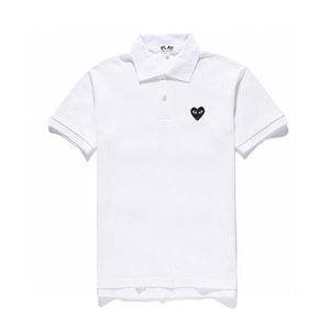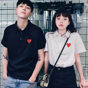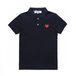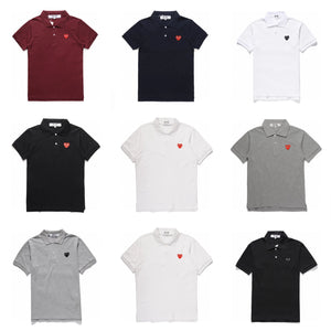 Rei Kawakubo T-shirt Top Version polo Embroidered Red Heart Lapel T T-shirt Half Sleeve Men and Women Star Loose
