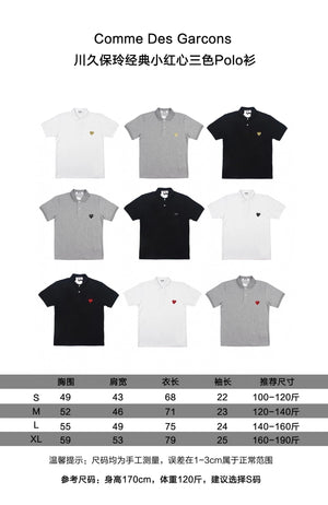 Rei Kawakubo Polo Shirt Embroidered Red Heart Lapel T-shirt Half Sleeve Men and Women Stars Loose before Purchase Instructions
