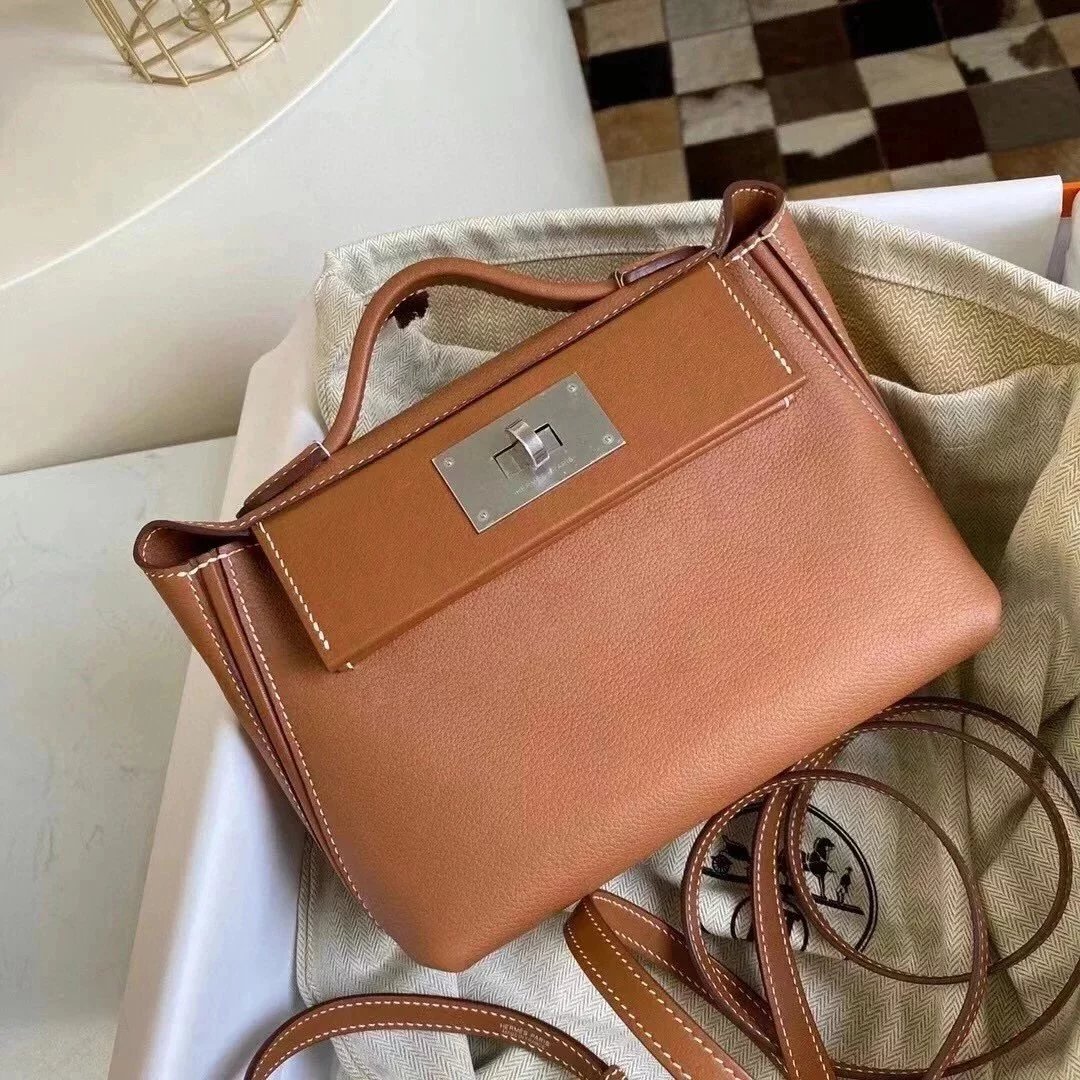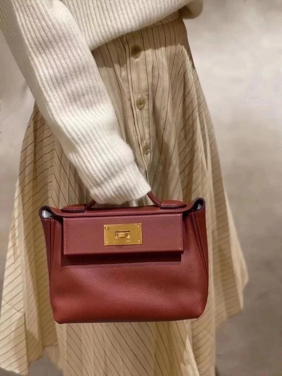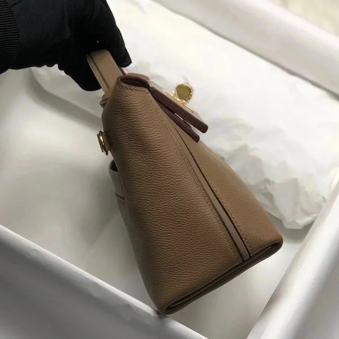 Hermes women's bag Top version Positive pin Quality KellyMini2424mini2424Wax Line Handmade evercolor Leather fabric Swift Small Leather Satchel21cm Women's Shoulder Bag