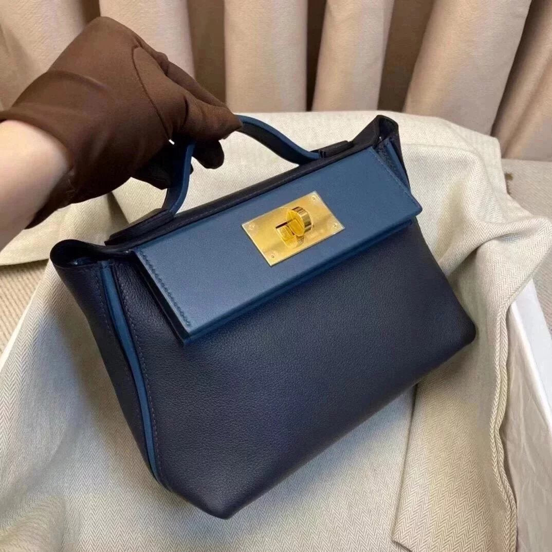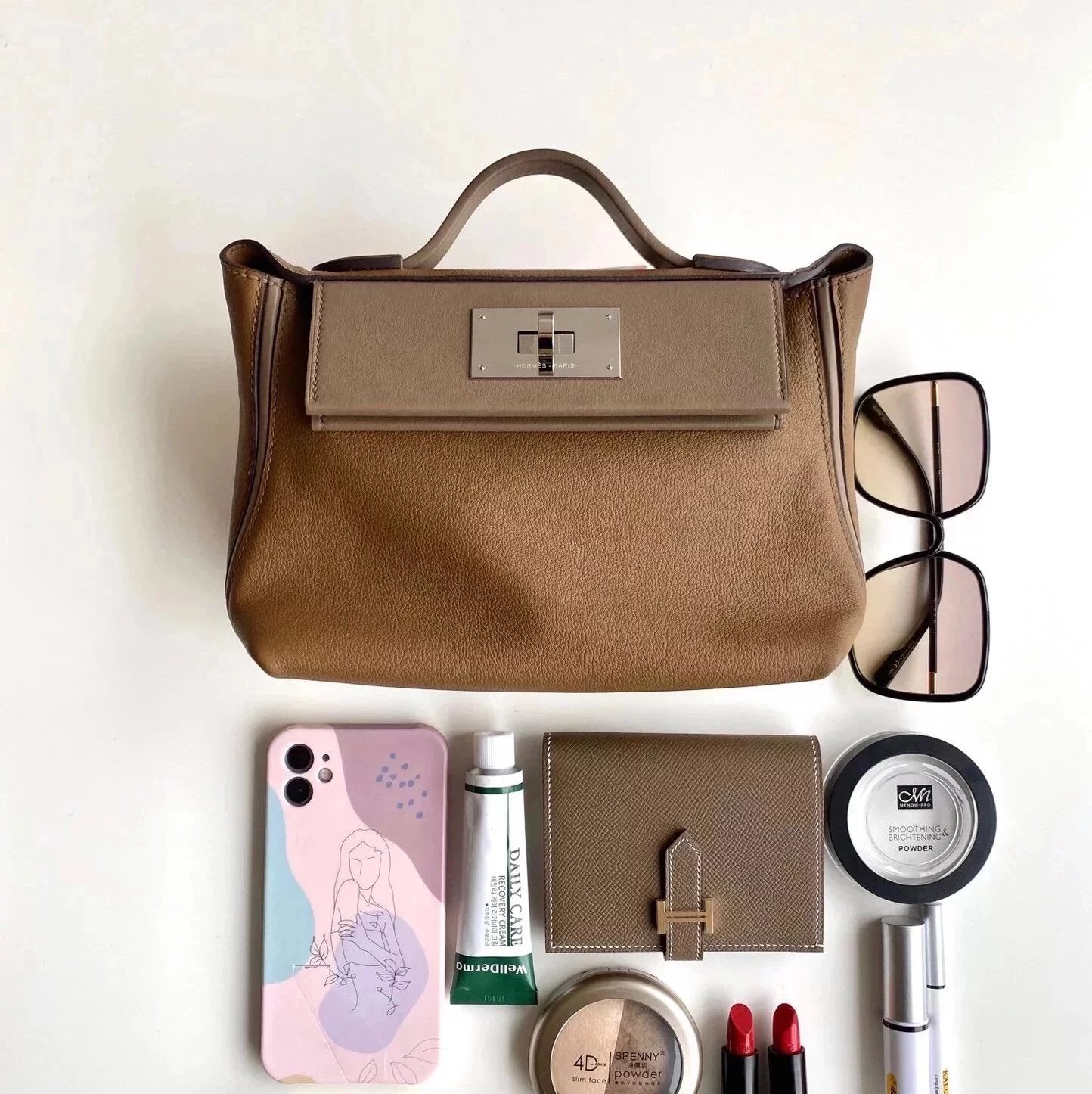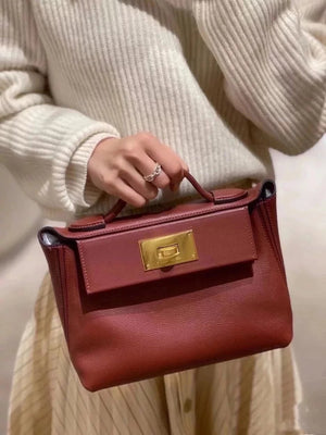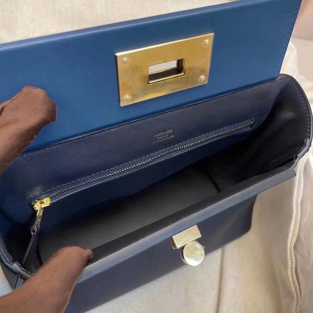 Hermes women's bag Top version Positive pin Quality KellyMini2424mini2424Wax Line Handmade evercolor Leather fabric Swift Small Leather Satchel21cm Women's Shoulder Bag