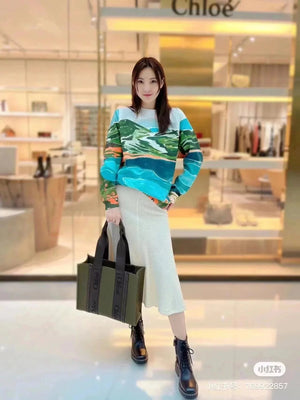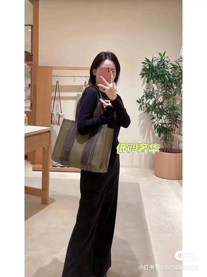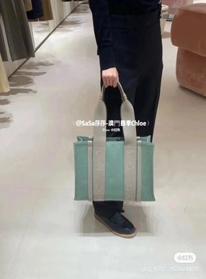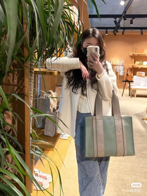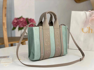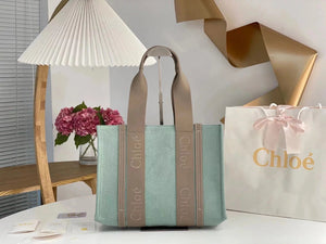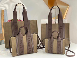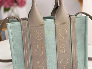 Chloe 2023-Early Spring New Woody Tote Package Exclusive Version-Debut. Low-Key Luxury with Connotation Is the New Color Matching of Chloe Woody Linen with Leather! It Makes You Fall in Love with This Textured Handbag at a Glance. It's Really Beautiful. It's the Same Style for Men and Women! (Large, Medium, Small, Mini.
