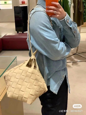 BottegaVeneta What Can the New Bowling Bag of Bodie House Hold? Have You Got the New Bowling Bag? Super Large Capacity ~ Key Low-Key Simple Casual Style with Good Upper Body ~ Fashionable Feeling Is Not Reduced at All, Combined with BV Classic Weaving Elements, Computer Can Also Be Installed