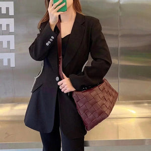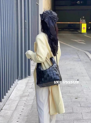 Bottega Veneta Women's Bag Top version 【Premium Version】Cassette Bowling Bag Sheepskin Woven Bag Women's Bag Large Capacity Unisex Commuter Portable Shoulder Messenger Bag Men's and Women's Bags New Hammock Bag