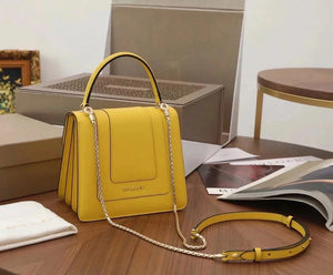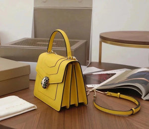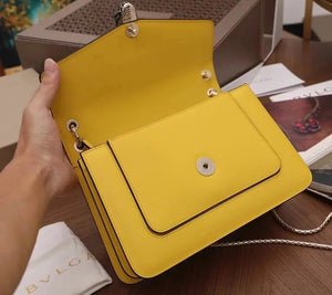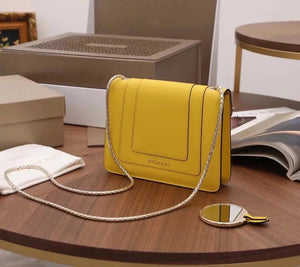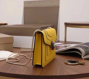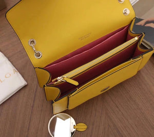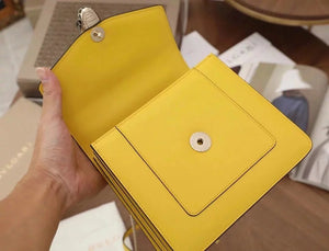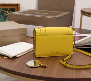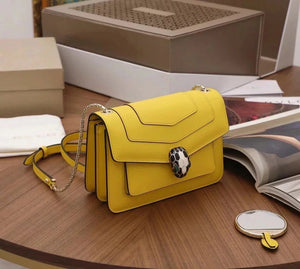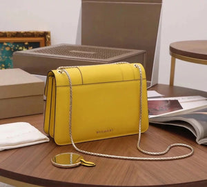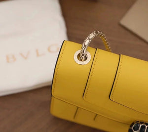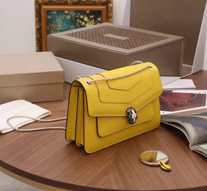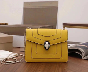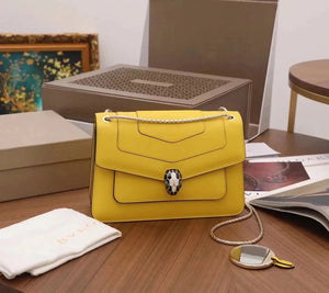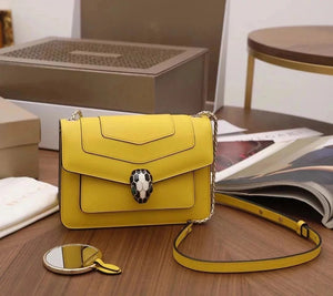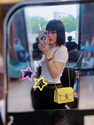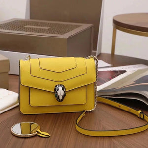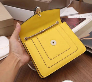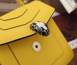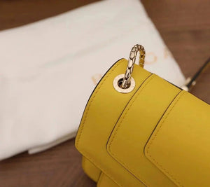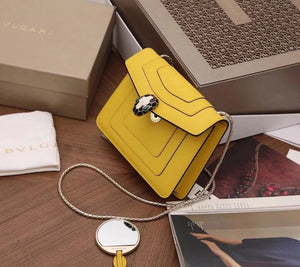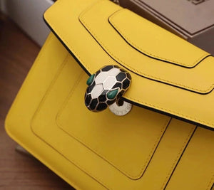 The Fresh and Elegant Senior Daisy Yellow in Summer Brings a Little Coolness to Summer! Size: 25 7.5 17cm. Code: 29032391050 "Serpentine Forever" Series Crossbody Bag Daisy Yellow Calfskin Crossbody Bag, Specially Made for the Coming Season. This Bag Is Made of Daisy Topaz Calfskin, Black and White Agate Enamel and Green Malachite Emotional Eyes! With Two Internal Pockets and One Side Mini Makeup Mirror!