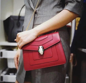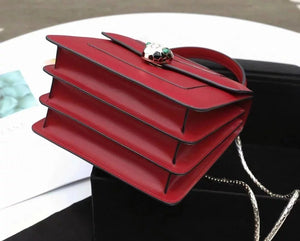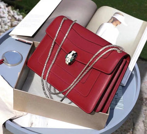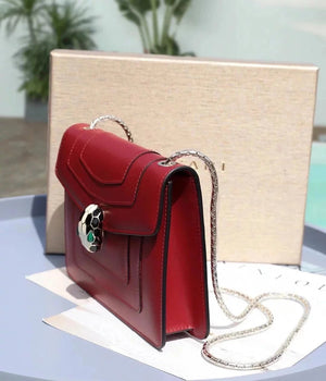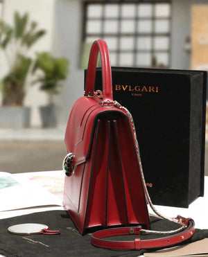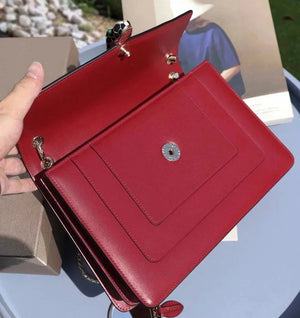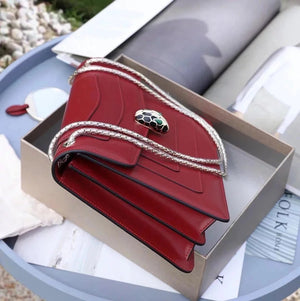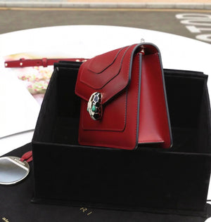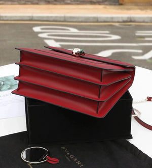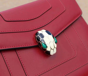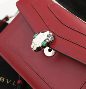 Size: 27.5*17.5*7.5cm with a Full Set of Packaging Bvlga **Malachite Snake Head Shanghai Red [Lightning] Leather Delicate and Soft [Seduction] Inspiration from Nature Gives Women a Sense of Charm and Fashion Bulgari in Addition to Jewelry Also Prove Bags the Manufacturing Process Is Extremely Luxurious and Unique Raincoat Packaging, pure Copper Hardware, Perfect Workmanship, Small Appearance, Necessary Wallet, Mobile Phone, Lipstick, Some Cash/Card, a Bunch of Keys Can Be Contained,