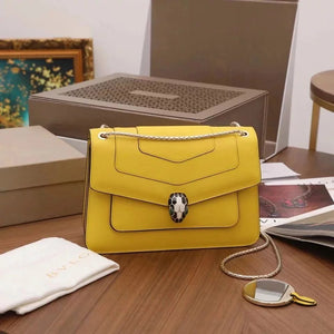 BVLGARI Bag Top version SerpentiForever Classic Red Daisy Yellow Cowhide Bag Decorated with a Snake's Head File Holder Chain Bag Portable Shoulder Messenger Bag Women's Bag