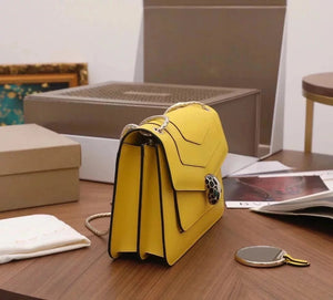 Large Size: 25*19 * 10cm with Full Package "Serpentine Forever" Series Crossbody Bag Daisy Yellow Calfskin Crossbody Bag, Specially Made for the Coming Season. This Bag Is Made of Daisy Topaz Calfskin, Black and White Agate Enamel and Green Malachite Emotional Eyes! With Two Internal Pockets and One Side Mini Makeup Mirror!
