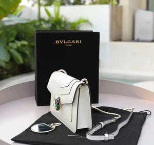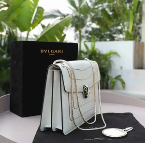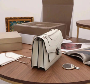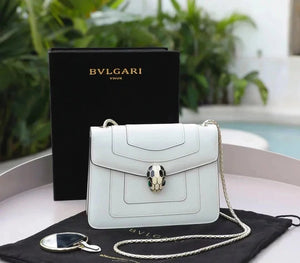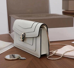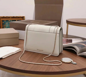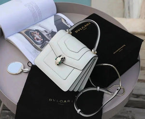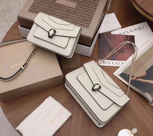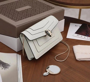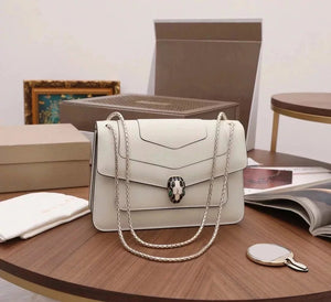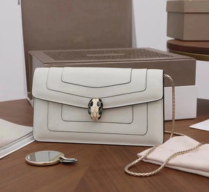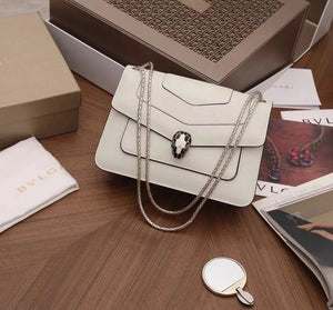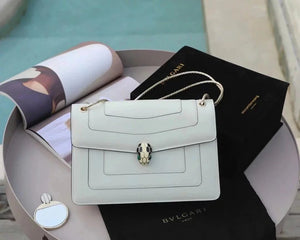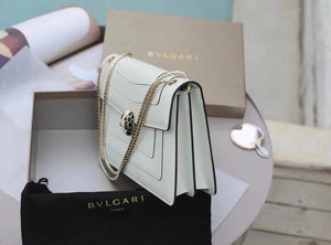 BVLGARI Bag Top version SerpentiForever Pearl White Handbag Cowhide Bag Decorated with a Snake's Head File Holder Chain Bag Portable Shoulder Messenger Bag Women's Bag