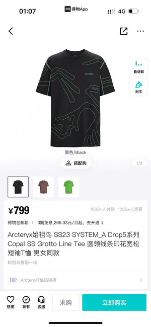 [Ss23 System_a Drop5 Series Copal SS Grotto Line Tee Functional Quick-Drying Crew Neck Line Printing Short Sleeved T-shirt] Same Style for Men and Women