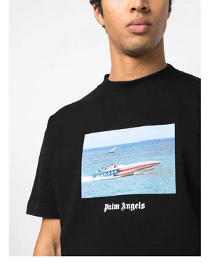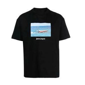 Palm Angels T-shirt Top Version Speedboat Printed Short Sleeve Men and Women European and American Leisure Couple round Neck T T-shirt
