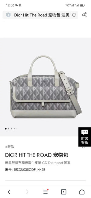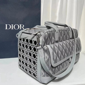 Real Shot 9943 This Dior Hit the Road Pet Bag Is a New Product of This Season, Decorated with Classic Logo of High Order Style. It Is Elaborately Made of Dior Gray Canvas, Decorated with CD Diamond Pattern, with Large Zipper Closure and Spacious Internal Compartment. The Side Rattan Plaid Cosmos Leather Creates an Ideal Breathable Effect, and the Front Flap Pocket Can Store All Kinds of Daily Necessities for Easy Access. With Top Handle and Adjustable and Detachable Leather Shoulder Strap, It Can Be Carried, Carried Or Crossbody.