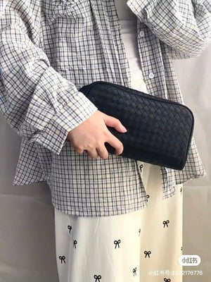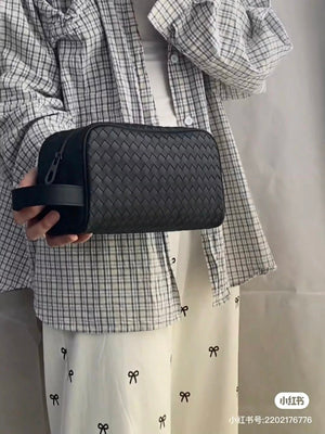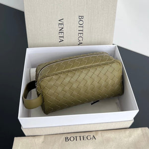 B642/BV Boutique Super Men's and Women's Same Wash Bag Storage Bag Clutch Original Hand-Woven Intrecciato Woven Wash Bag with This Wash Bag to Wander ~ Use Imported First Layer Cowhide? Breathable, Wear-Resistant and Durable, Zipper Opening & Closing Mode Single Compartment Is Very Practical☄️The Full Texture on Your Hands Reflects the Pursuit of Life and the Taste of Fashion? Size: 26X13X10