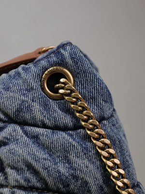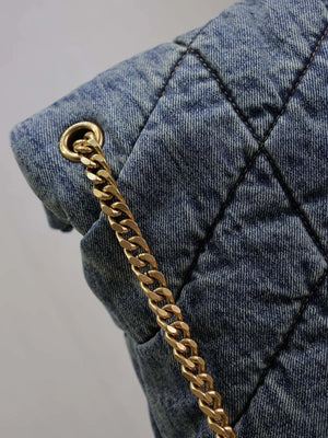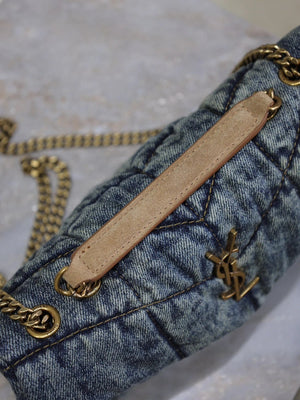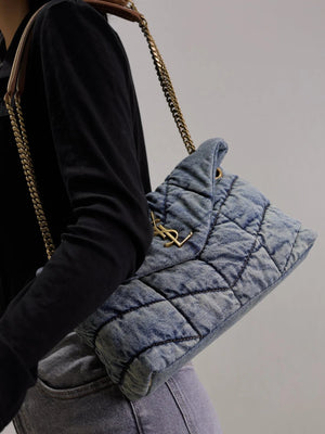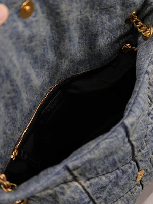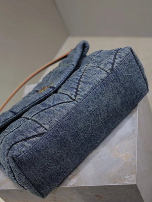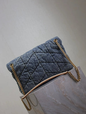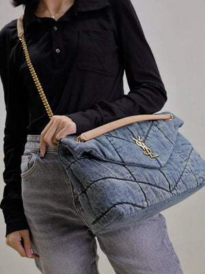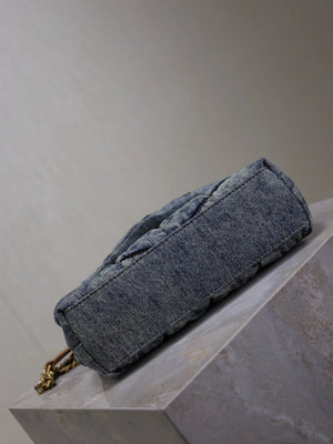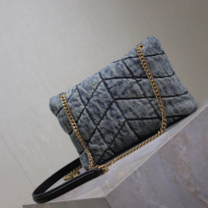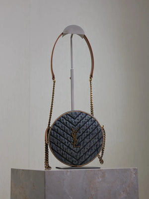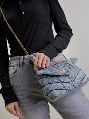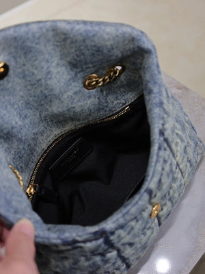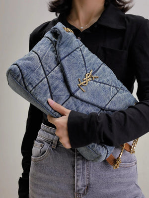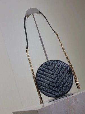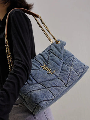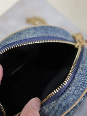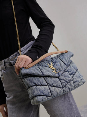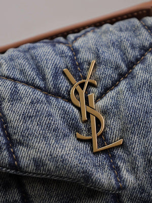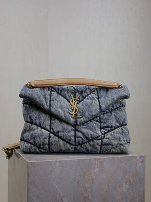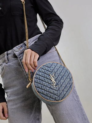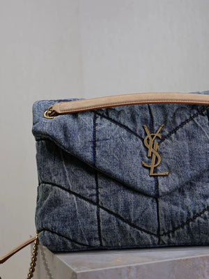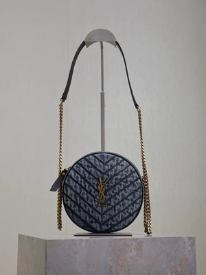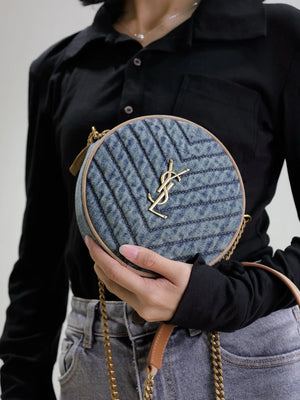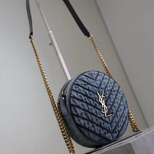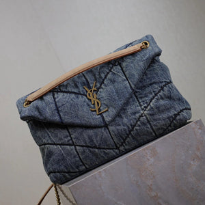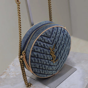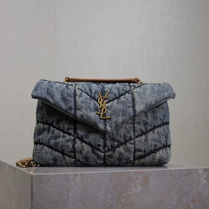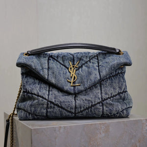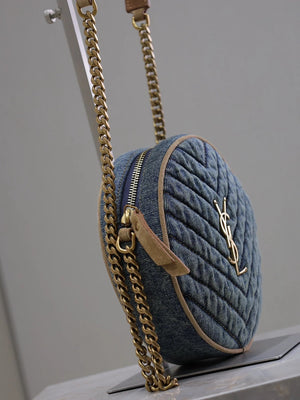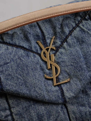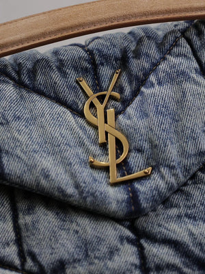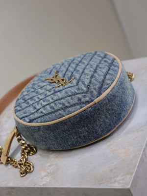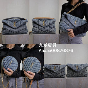 YSL Women's Bag Top version 【Super Original Leather】New VINYLE round Pie Bag Denim with Suede Autumn and Winter New Women's Bag Louloupuffer Denim Cloud Bag LouLou Denim Denim Tote Bag Crossbody Bag