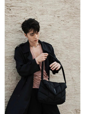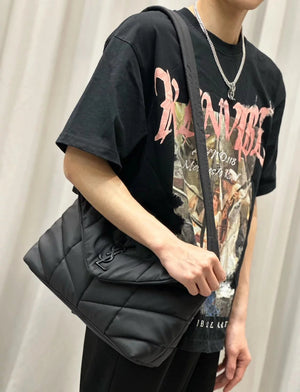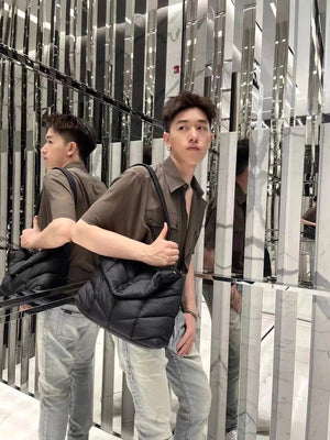 YSL Women's Bag Top version 【Version】New Louloupuffer_Nylon Men Messenger Bag Crossbody Bag Women's Casual Salt College Style Shoulder Messenger Bag Lightweight Nylon Fabric Commuter Bag Large Capacity Bag Nylon Leisure Bag